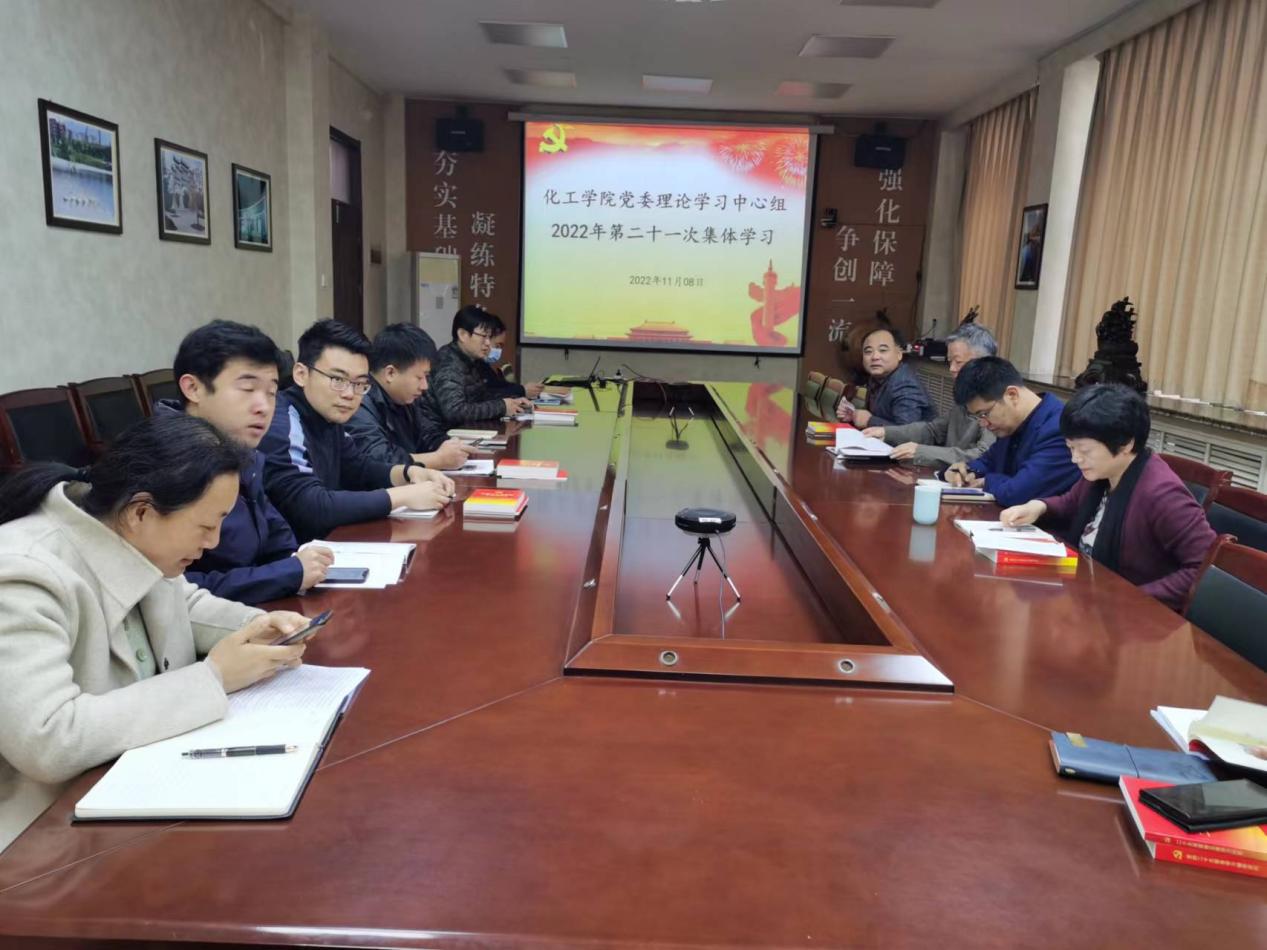 11月8日,化学与生物工程学院党委理论学习中心组开展第二十一次集中学习研讨,学院党委理论学习中心组成员参加,学习研讨由学院党委书记窦存增主持。