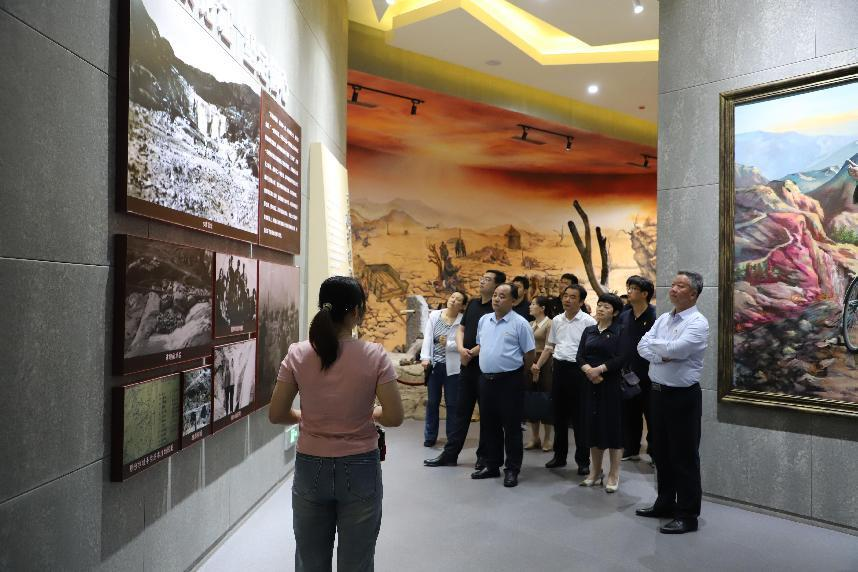 一行人来到淌水崖水库事迹陈列馆,馆内通过照片和实物展示、场景复原、多媒体演示等方式,立体展现了上世纪70年代临朐县九山公社党员干部群众在物资、技术极端匮乏条件下,历时6年时间建成石砌连拱坝,修建淌水崖水库的过程,并在此过程中孕育形成了“同心同德、艰苦奋斗、自强不息、开拓创新”精神。随后,一行人实地参观了淌水崖水库。