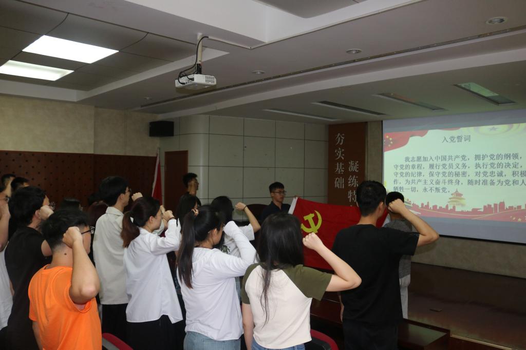 在毕业生党员陈皓玮的带领下,全体毕业生党员面向党旗,昂首挺立,高举右手,庄严宣誓,声音洪亮,字字入心!在庄严的宣誓声中,表达了对党的忠诚、对人民的热爱以及对社会主义事业的坚定信仰。他们郑重承诺,将永葆初心,时刻践行党的宗旨,以实际行动诠释共产党员的责任与担当。