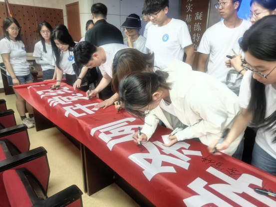 毕业生党员在党纪学习教育宣传条幅上签字 做出一份郑重承诺