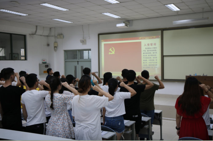 党委隆重召开庆七一新党员宣誓暨老党员重温入党誓词大会,学院党委书记李垂文、教工党员代表、全体学生党员参加会议,会议由学院团委负责人易凡主持。新老党员齐聚一堂,共同庆祝中国共产党成立98周年。