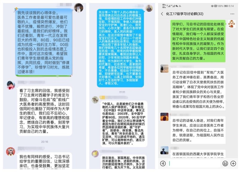 近日,化学与生物工程学院积极组织学生学习贯彻习近平总书记给在首钢医院实习的西藏大学医学院学生的回信精神,结合当前疫情防控的形势,充分利用网络平台,通过多种方式和途径开展工作。