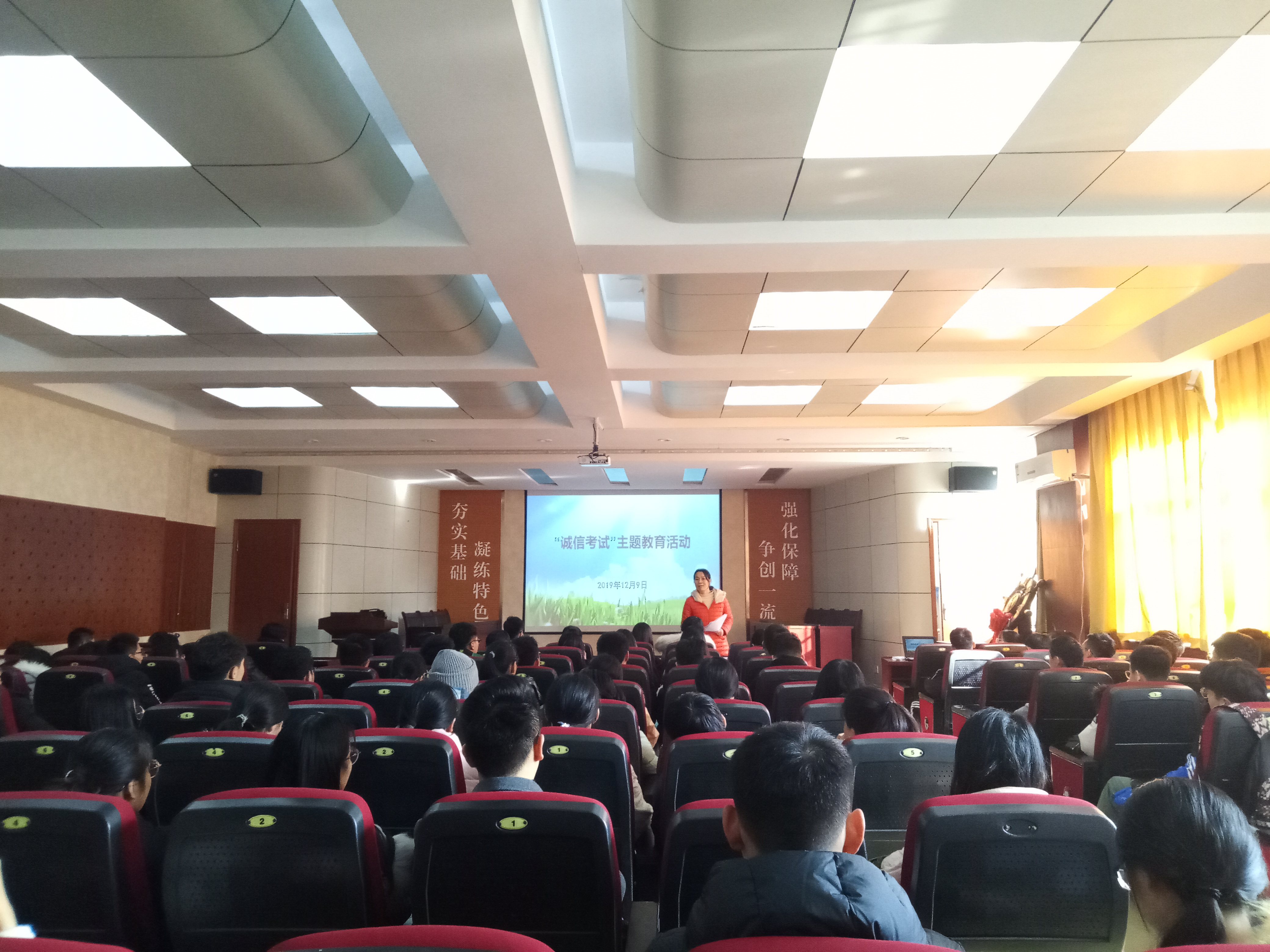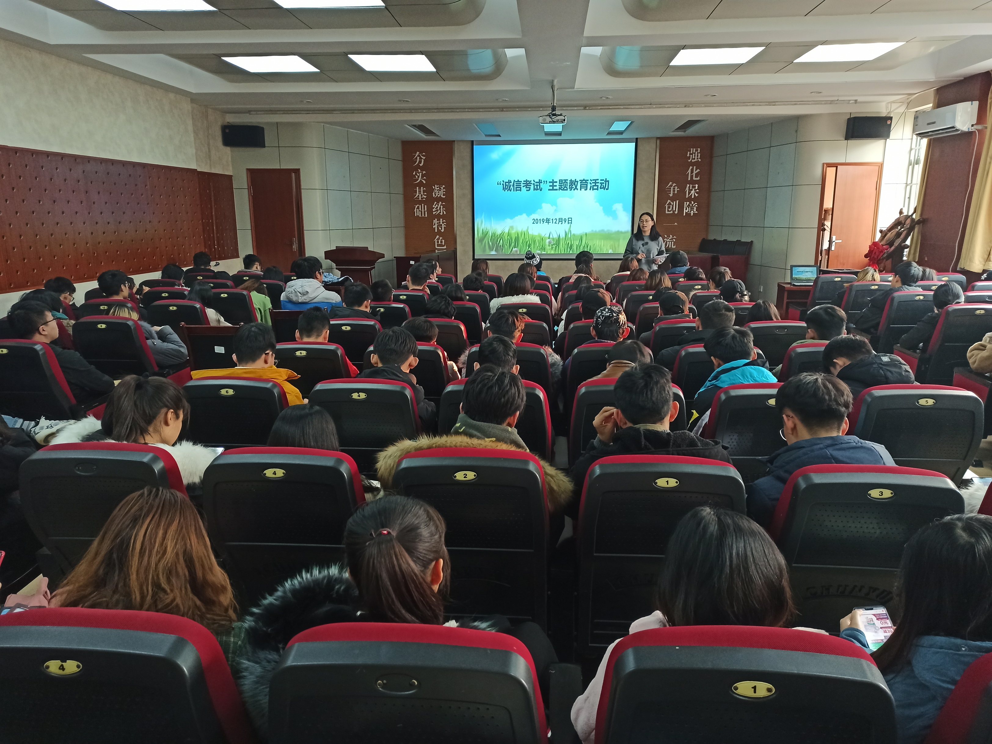 12月9日,色情网站 举办“诚信考试”主题教育活动,向全体在校同学进行诚信教育。会上,各位辅导员老师首先宣读了学校关于考风考纪的相关要求和处分规定,讲解了诚信应考的具体内容,提醒大家要正确对待考场纪律。通过已有的考试违纪案例,告诫同学们不要以身试法,违纪违规,并提醒大家带好考试所需有效证件及文具用品。会后,全体同学签订了考试诚信承诺书。本次教育活动,端正了考风,严肃了考纪,同学们纷纷表示会积极备考,诚信应考,努力争取好的成绩。(通讯员:徐华坤)