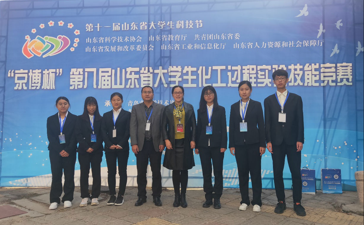 10月30日,2019年“京博杯”第八届山东省大学生化工过程实验技能竞赛在青岛科技大学落下帷幕。化工学子在本次竞赛中荣获一、二、三等奖各一项,其中化学工程与工艺2017级OMG队(孟嘉琦、王文君、王洁)荣获一等奖, “驭梦队”(杨静、周蔷、张朵朵)摘得二等奖,“啥也不会队”(张鹏、翟林晓、张文飞)获得三等奖。徐冬梅、张治山、高军、李敏和马小隆等担任指导教师。