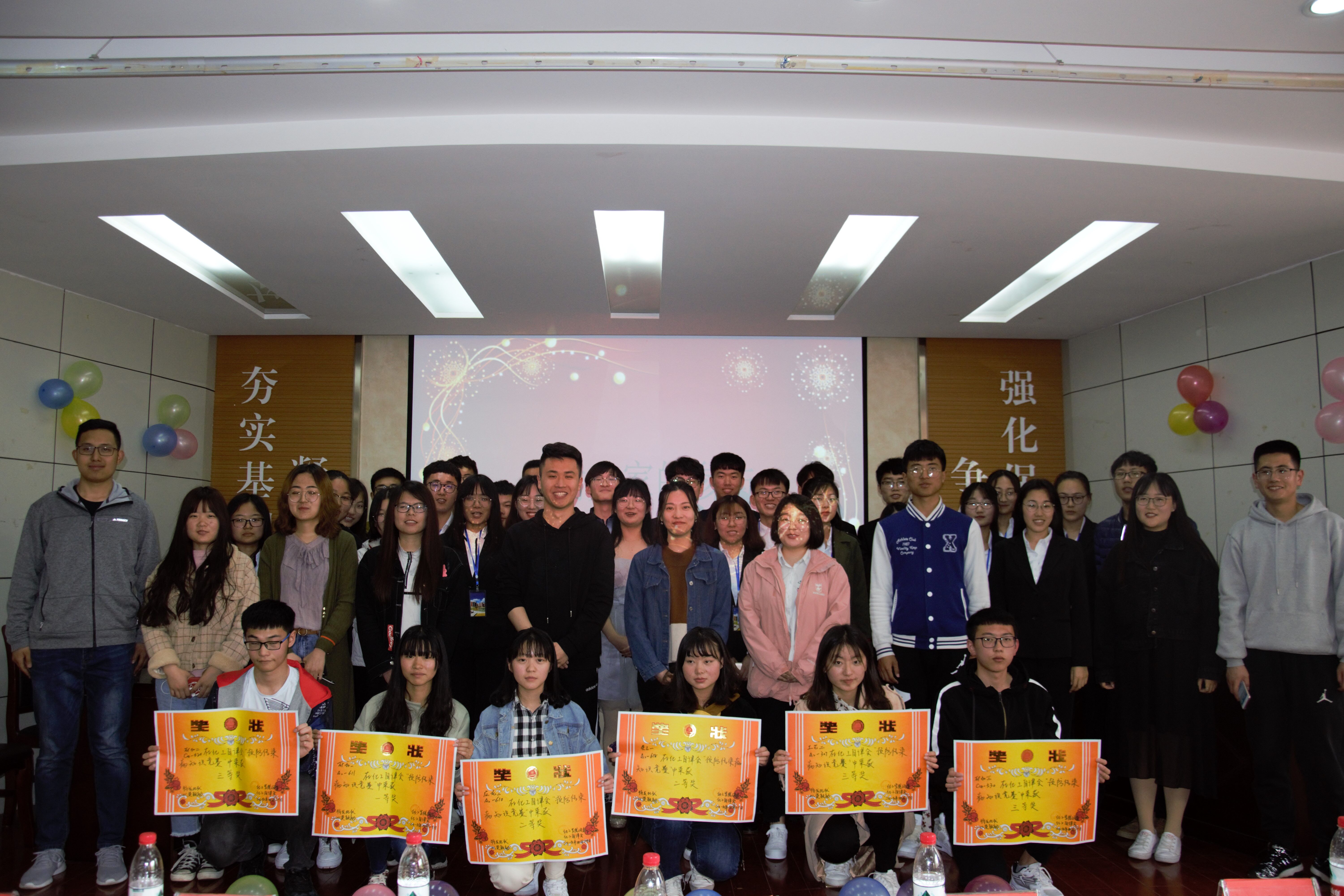 经过前期激烈的比拼,有八支队伍从初赛中脱颖而出进入到决赛。决赛分为四轮,第一轮比赛为宿舍代表上台讲解自己宿舍的布置情况,评委根据宿舍的干净程度与所能达到的传染病预防要求程度进行打分。每个宿舍讲解员在台上大方自如,讲得娓娓动听,赢得台下阵阵掌声。第二轮比赛为现场答题,各宿舍代表按顺序依次作答,根据答题情况获得相应分数。参赛队员们在赛前都做了充分的准备,在台上全神贯注地阅读屏幕上的题目,准确而迅速地给出了正确答案。赛程过半,紧张刺激的答题之余,现场组织了一些趣味小游戏,台下的观众争相参与,“一块五毛”、“拷贝不走样”,引得台上台下欢声不断。紧接着,比赛也进入了决胜阶段。第三轮的抢答环节和第四轮的挑战环节,将比赛气氛推向了最高潮。最终,A2-611宿舍以卓越的表现获得本次知识竞赛一等奖,A2-610、A2-618宿舍获得二等奖,A2-307、C14-530、C14-520宿舍获得三等奖。