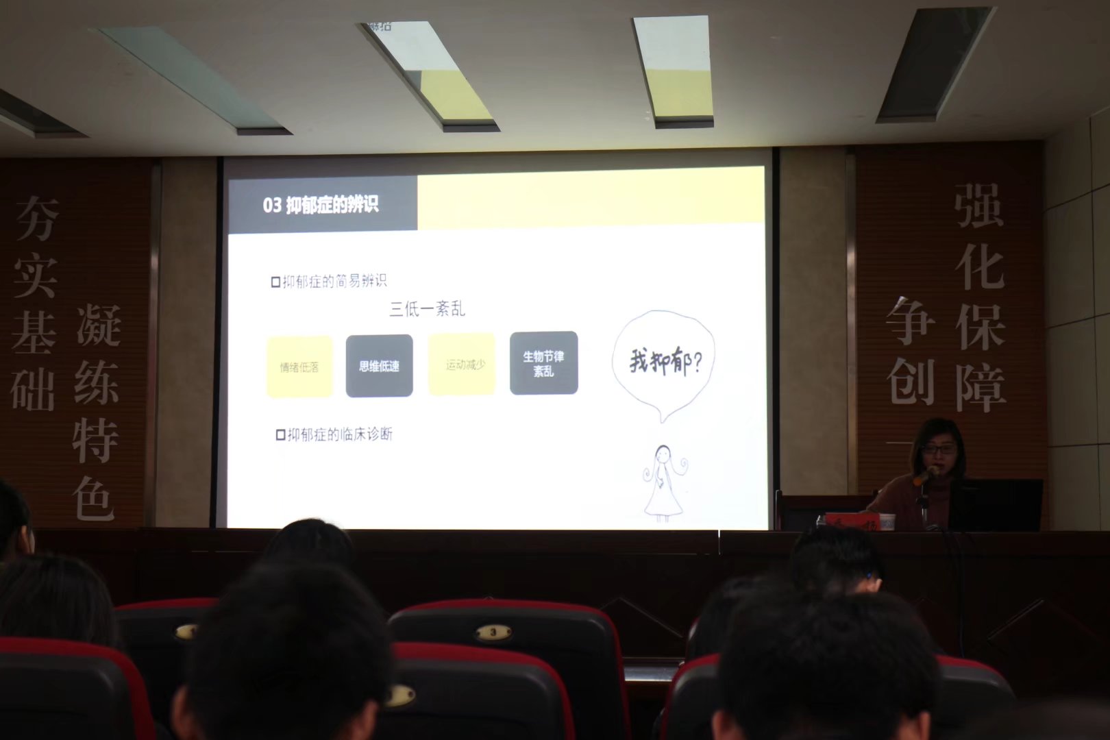 此次心理知识讲座的主题是抑郁症。随着社会的不断发展,抑郁症的患病率也在不断增高。据统计,我国每年抑郁症的发生概率高达5%~6%,抑郁症俨然成为了威胁大学生健康的一大危害。