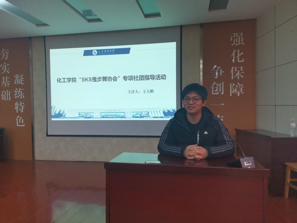辅导员王大鹏老师担任主讲,SKS曳步舞协会全体成员参加了此次培训。王大鹏老师介绍了SKS曳步舞协会整体情况,并从社团的建设、学生社团工作思路和学生社团骨干的引领作用三方面入手为学生社团骨干和社团成员给出建议。随后,SKS曳步舞协会负责人陈庭帅总结社团活动成果,分享社团建设经验并表达了希望通过本次培训全面提升个人能力从而带领社团更好发展的希望。