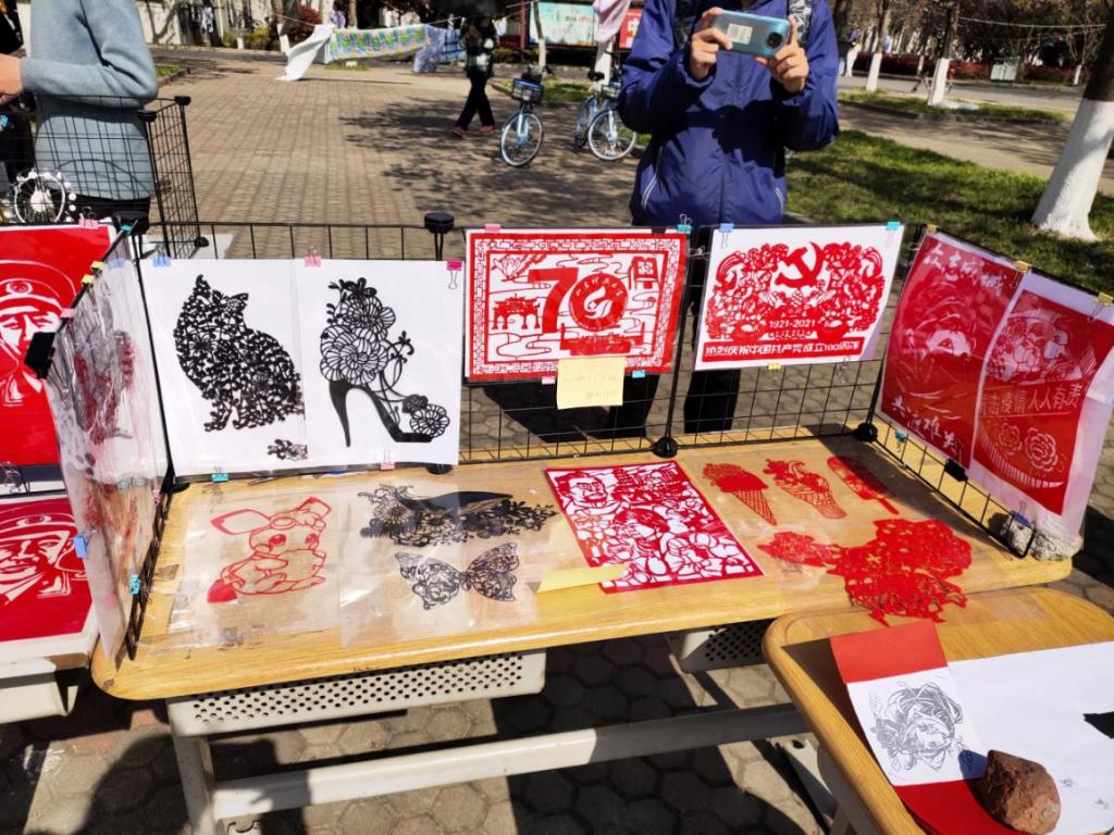 刀下飞花剪纸社在繁星广场举办手工艺品展览活动。色情网站