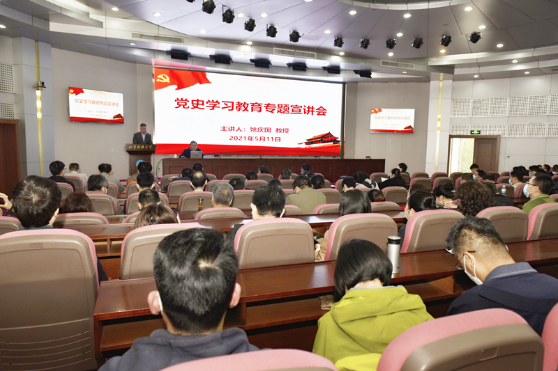 5月11日,校长姚庆国以“千古风流,还看今朝”为题作党史学习教育专题宣讲,寄语青年人明理崇德,学史力行,赓续红色基因,牢记初心使命。