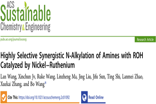 王博教授团队在协同催化“借氢反应”领域取得了新进展。相关成果以“Highly Selective Synergistic N‑Alkylation of Amines with ROH Catalyzed by Nickel−Ruthenium”为题发表在国际知名学术期刊ACS Sustainable Chemistry & Engineering上。
