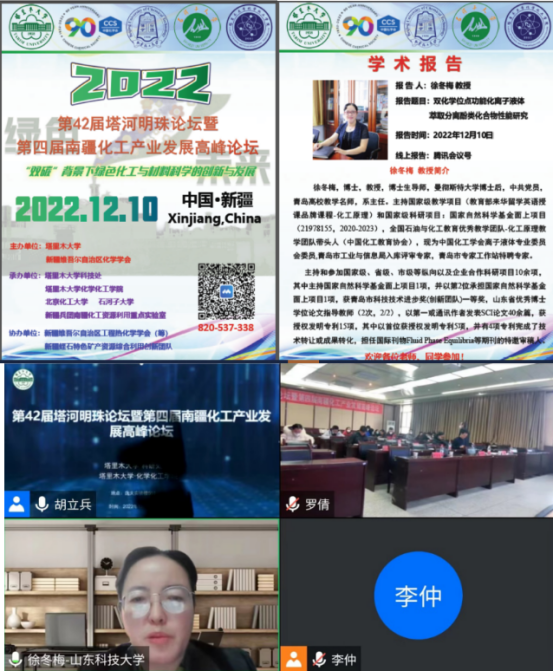 2022年12月10-12日,“第42届塔和明珠论坛暨第4届南疆化工产品发展论坛”在新疆塔里木大学成功举办。会议的主题为“双碳”背景下绿色化工与材料科学的创新与发展。中国化工学会离子液体专业委员会委员、色情网站