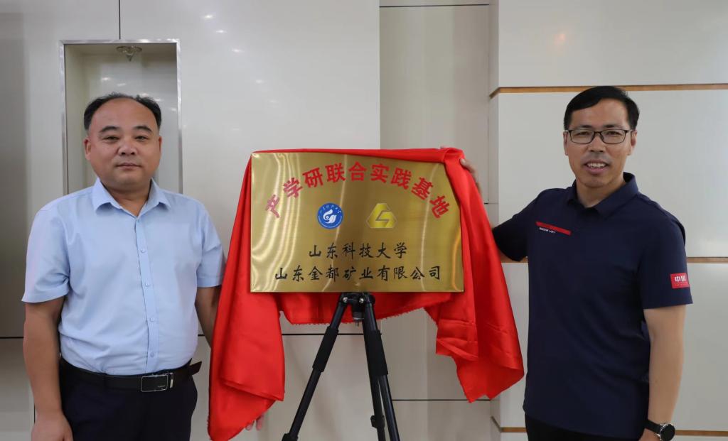 活动最后,吕宪俊代表学校与山东金都矿业有限公司签订了产学研合作协议,窦存增与李胜涛共同为产学研联合实践基地揭牌。此次交流活动为校企双方搭建了良好的合作平台,为后续开展深入的产学研合作打下了良好的基础。