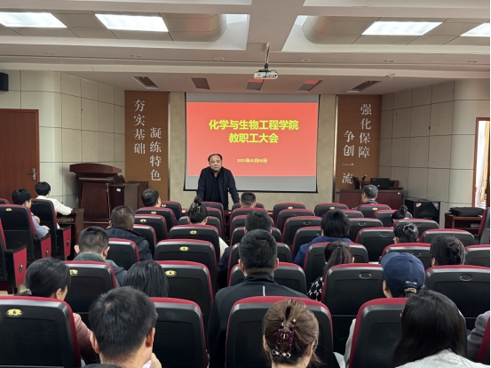 在报告厅组织召开全体教职工会议。会议由学院党委书记窦存增主持,学院全体教职工参加了会议。