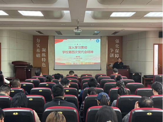 窦存增为全院教职工作学校第四次党代会精神的宣讲报告。他从学校第四次党代会基本情况、会议的重要意义和主要成果、会议主要精神以及确保第四次党代会精神落实见效等四个方面对学校第四次党代会精神进行了深入解读。他详细阐述了第四次党代会确立的“一三六八十”的战略布局,要按照锚定“一个目标”,坚持“三步走”,实施“六大战略”,迭代“八项任务”,升级“十大工程”的战略布局,切实推动学院各项事业的发展。他强调,要坚守教书育人初心,全面落实立德树人根本任务,用实际行动为学校的高质量发展贡献力量。