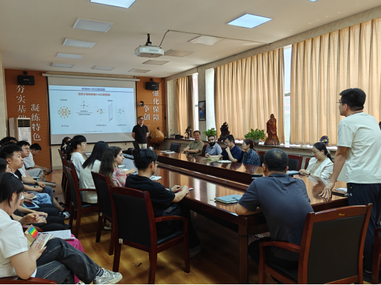 报告内容涵盖如何开展设计与合成具有手性特质的半导体纳米团簇,并研究其类生物大分子的自组装能力,探索人工合成具有特殊复杂自组装结构的纳米材料,以及不同高校和层次人才的成长之路。学部的青年学者和部分研究生围绕着上述内容与韩海祥教授进行了深入的交流与讨论。