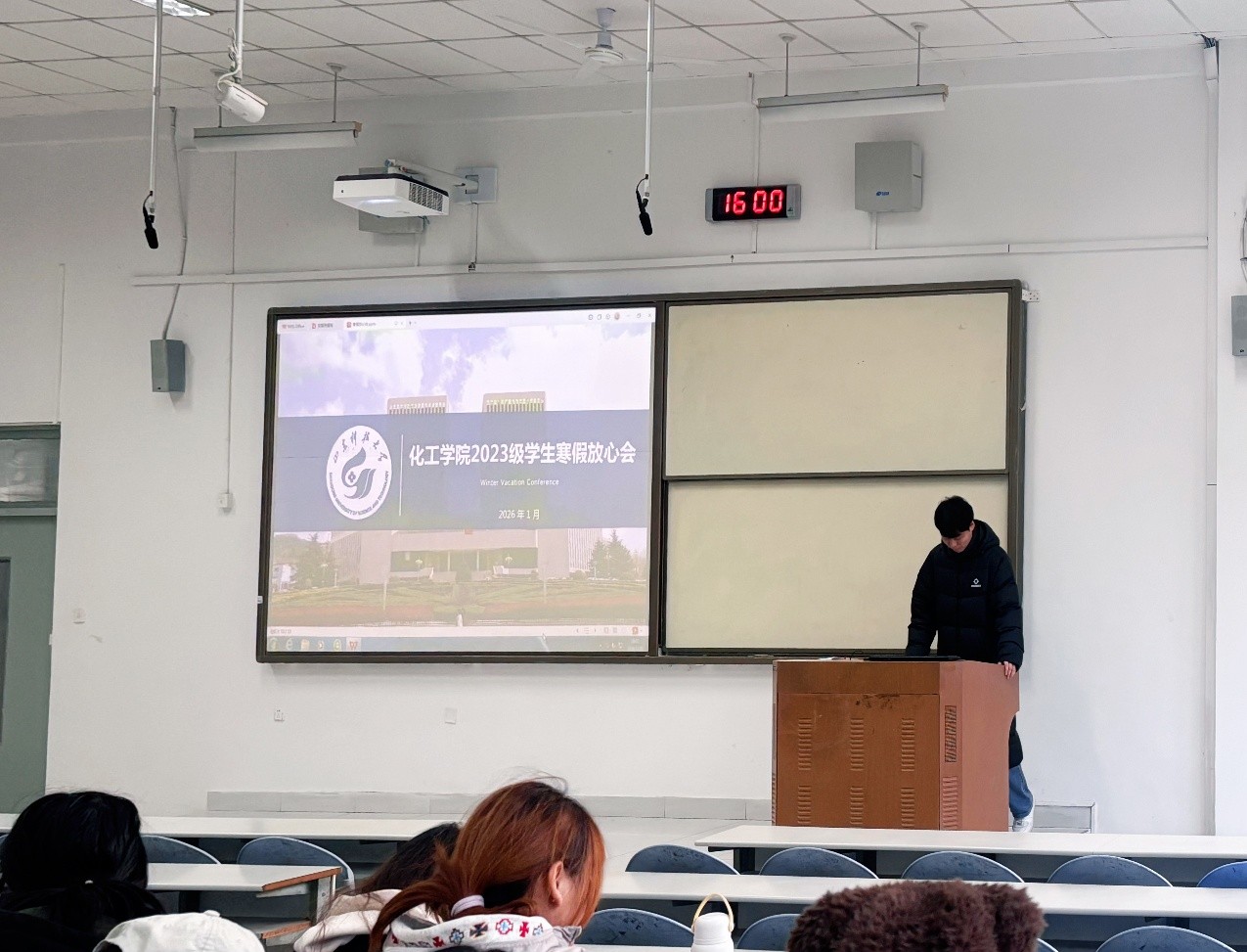 针对大一新生,辅导员李玲玲以“假期安全与适应性过渡”为重点展开指导。她结合真实案例,系统讲解了出行、网络、居家等方面的安全防范要点,并引导同学们做好从高中到大学首个寒假的过渡规划,鼓励大家在适度休息的同时,积极参与社会实践、发展兴趣爱好,逐步培养自主规划与独立生活的能力。