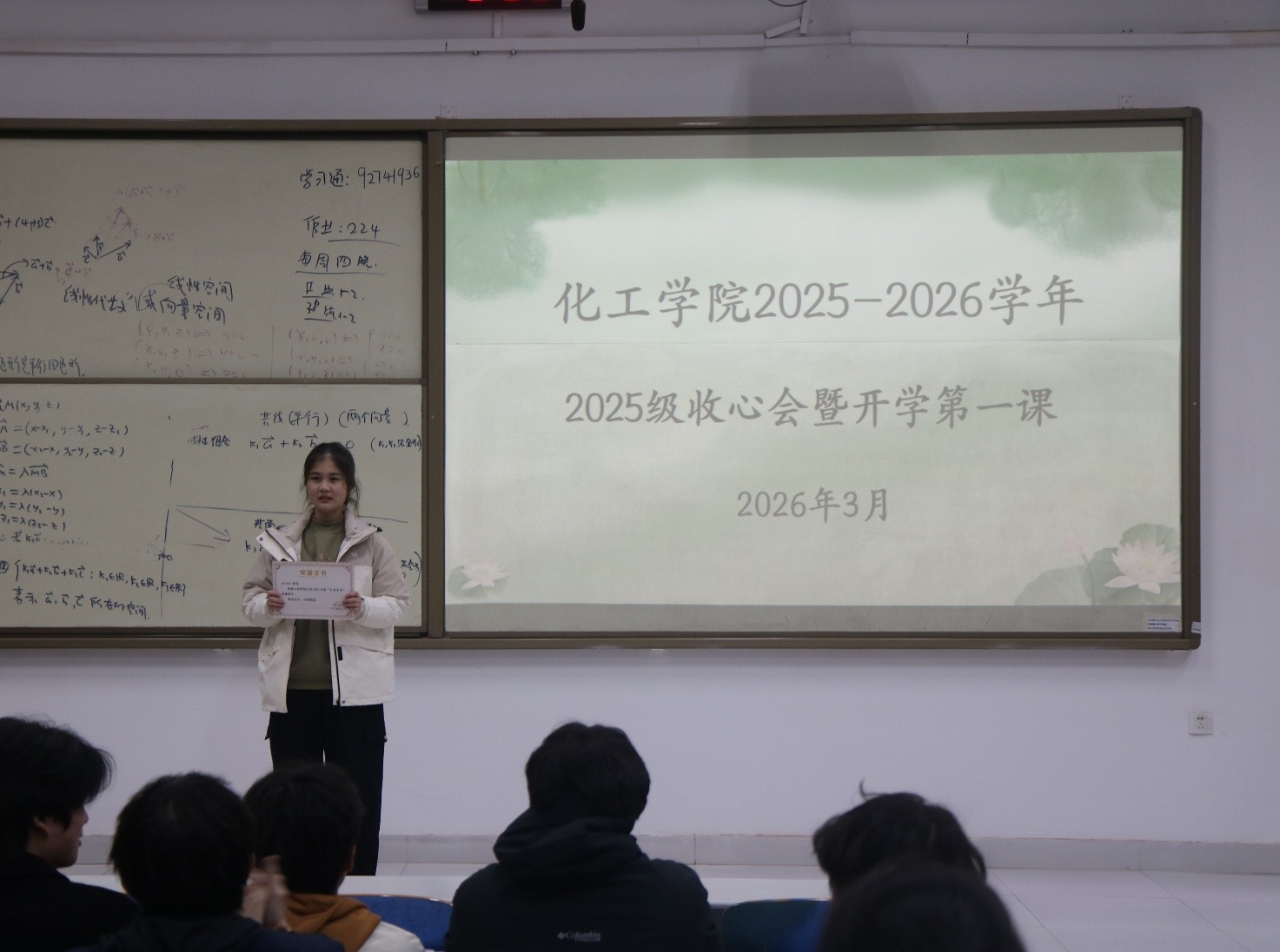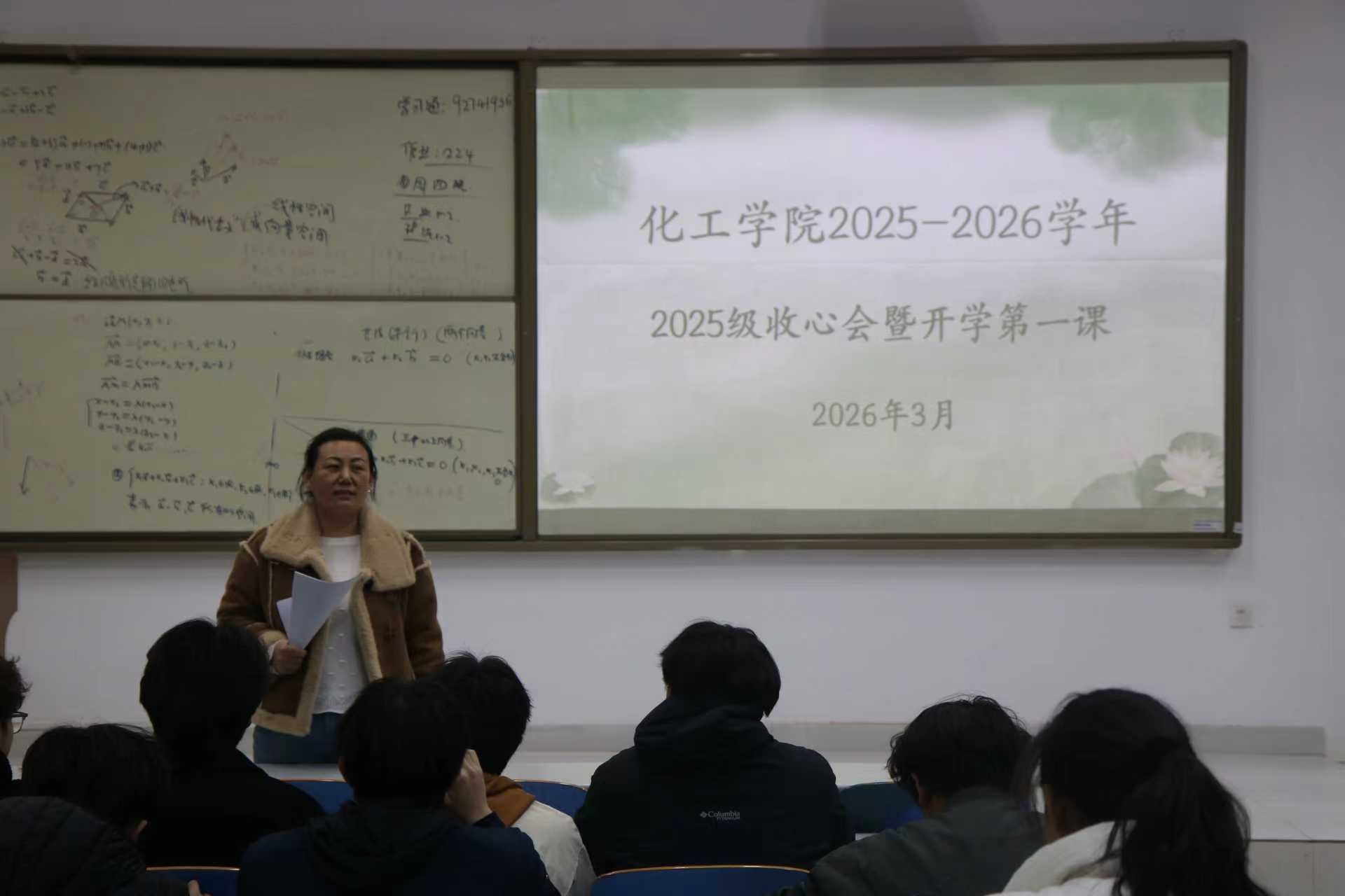 在J1-228教室召开2025级本科生收心会暨“开学第一课”。会议由2025级辅导员李玲玲主持,全体2025级本科生参加。