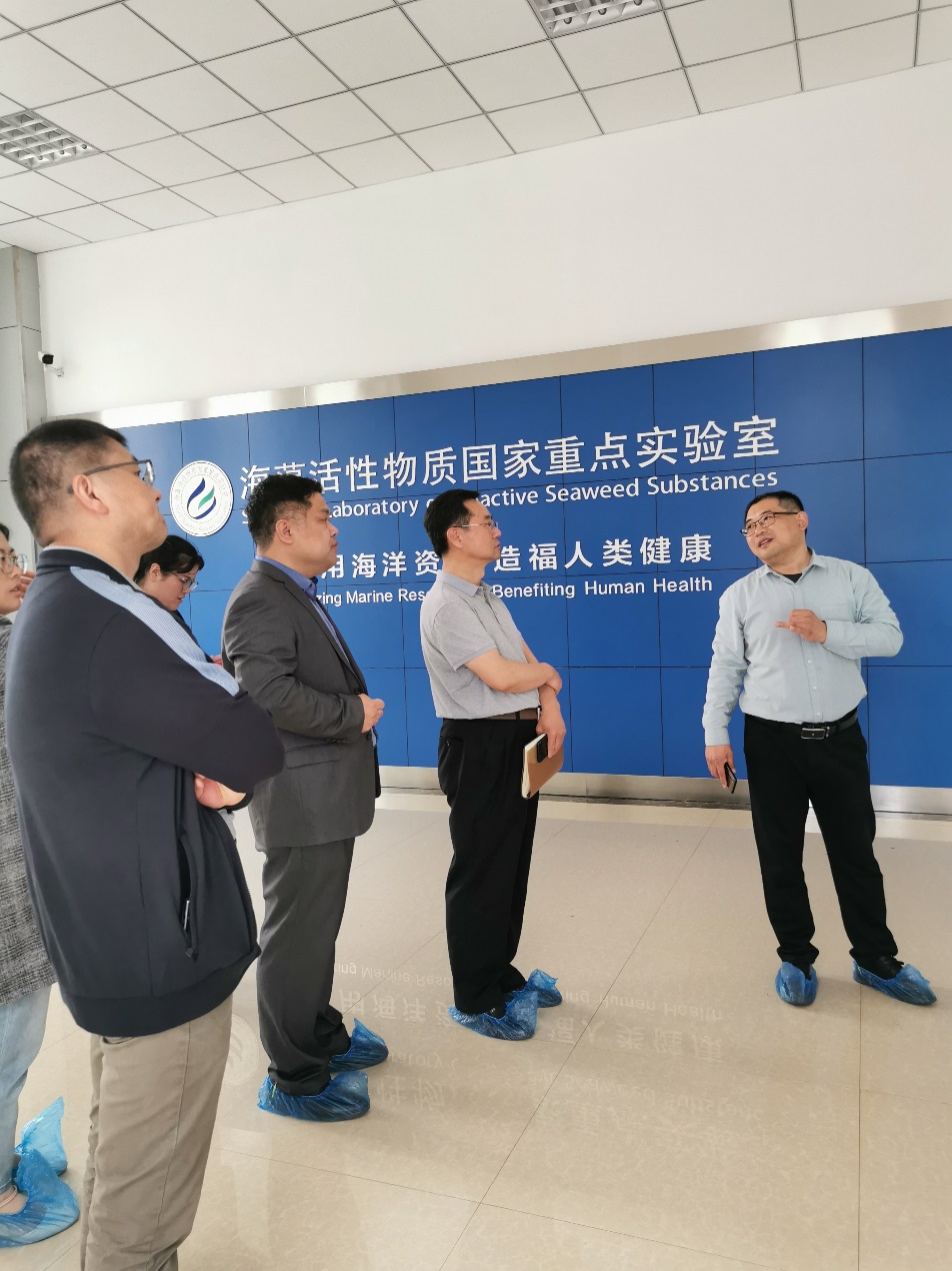 交流小组首先实地参观了明月海藻科技馆和海藻活性物质国家重点实验室,了解集团对海藻的深入研究和广泛应用与大健康产业终端产品开发、最新技术等情况,切身感受到明月海藻集团不断以自身产业优势为基础,为蓝色经济发展赋能所带来的高科技力量和爆发潜质。