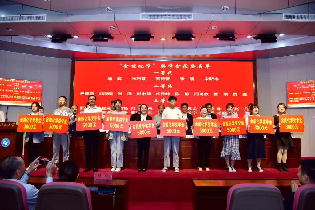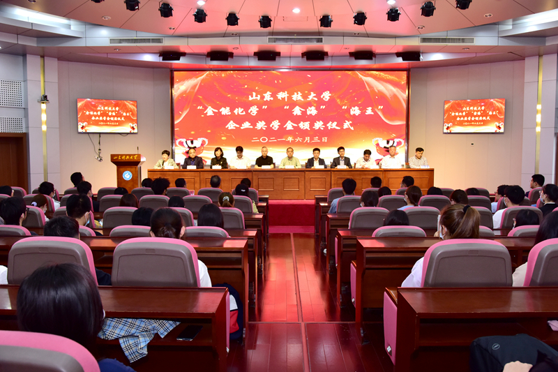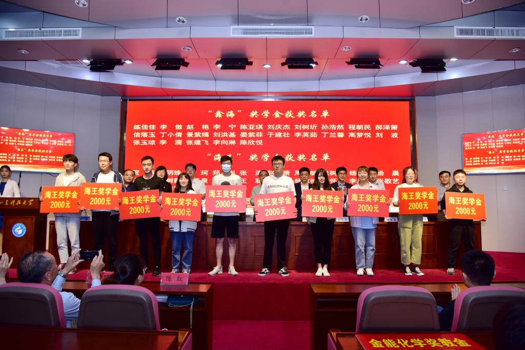 “金能化学”“鑫海”“海王”企业奖学金颁奖仪式在逸夫讲堂举行。副校长曾庆田出席仪式并讲话。