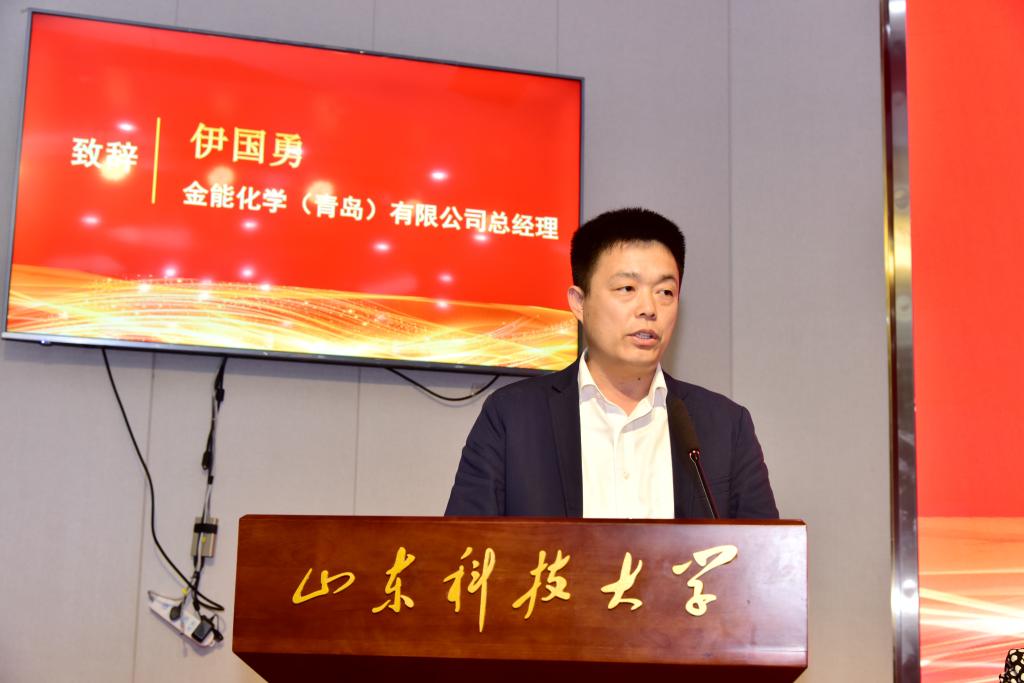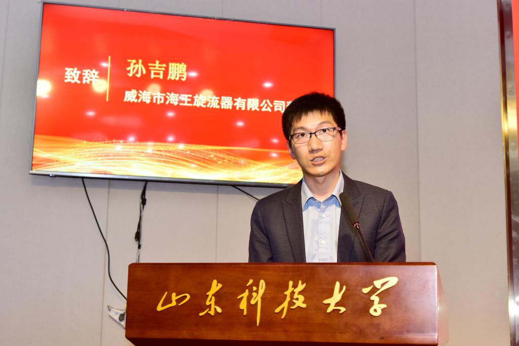 金能化学(青岛)有限公司总经理伊国勇、鑫海矿业装备有限公司董事长张云龙、威海市海王旋流器有限公司董事长孙吉鹏分别致辞。他们介绍了企业发展情况和捐款资助的初心,并对学校一直以来的大力支持表达了感谢,希望同学们坚定信念,树立远大理想,以强烈的紧迫感和执著精神,追求新知、勇攀高峰。