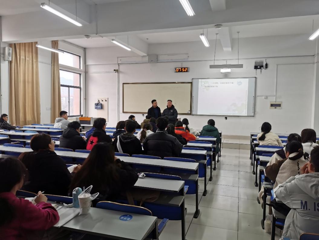 上课前学院领导与任课老师亲切交谈