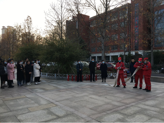 演练开始前,消防科队员就消火栓及消防水带、水枪的展开、连接和使用,干粉灭火器的灭火类型、使用方法等进行了现场培训,重点讲解了灭火要领,要站在上风向,握好喷枪或胶管前端,对准火苗根部喷洒。学生们认真听讲,仔细观看队员们演示,学习消防知识和消防器材的使用方法。