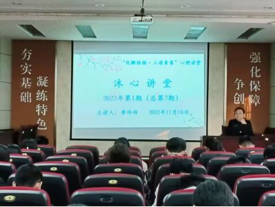 于11月18日下午在J2-104报告厅举办2022年第1期(总第7期)“化解桎梏·工读青春”——沐心心理讲堂。此次讲座由学院辅导员李玲玲主讲,学院心健联全体成员以及2022级宿舍心理观察员到场聆听。