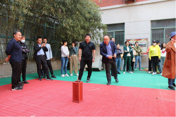 本次趣味运动会共设置投壶、运输小队2个项目,学院教职工们自由组合,5人一队,以团队的形式进行比拼。投壶现场,一支支道具箭从手中抛出,在空中留下一道优美的弧线,大家都期待着箭入方壶。运输小队项目是用箭夹住乒乓球进行接力赛,考验的不仅是平衡能力,更是团队合作。这两个项目充满了趣味,教工们兴致勃勃,竞相踊跃参加,一展身手。运动会不但是智慧和体力的角逐,更是团结和协作的比拼。参赛教职工们兴致盎然、斗志昂扬,现场气氛热烈,掌声笑声不断,其乐融融。