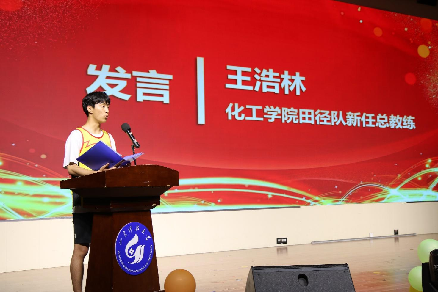 田径队换届仪式上,田静为新任教练王浩林、赵家润、李双双颁发聘书,老教练赵良朔、新教练王浩林进行了小黄衫交接仪式。赵良朔在发言中总结了一年来田径队的努力奋斗和辛苦付出,向取得骄人成绩的田径队队员们表示祝贺,表达了对新一届田径队的期望和信心;王浩林表示将继续传承化工田径队精神,有信心有决心带领田径队取得新的荣誉、铸造新的辉煌。