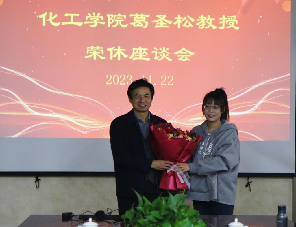 举办葛圣松教授荣休座谈会。学院党委书记窦存增,院长吕宪俊,党委副书记兼副院长、院工会主席田静及应化系教师代表参加座谈会,会议由田静主持。