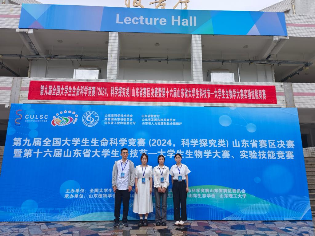 共有4支队伍进入决赛,由李慧娟老师带队,王博副院长作为评审专家共赴山东理工大学参赛。经过激烈角逐,生物制药专业2022级1班李倩同学负责的“肝胆相“蓟”-水飞蓟宾的绿色低共熔溶剂提取工艺优化及机理探讨”、生物工程2021级1班郭新富同学负责的“葫芦脲自组装荧光材料的构筑及其分子识别性能研究”、生物制药2022级2班周盈盈同学负责的“南极磷虾放线菌Nocardiopsis sp. LX-1发酵条件优化及表观遗传修饰”三支队伍获全国三等奖。生物工程2022级2班周佳怡同学负责的“山苍子精油的提取”获山东省二等奖,13支队伍获山东省三等奖。