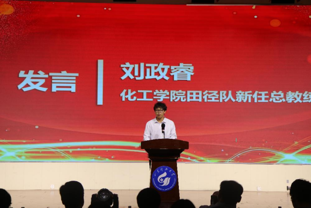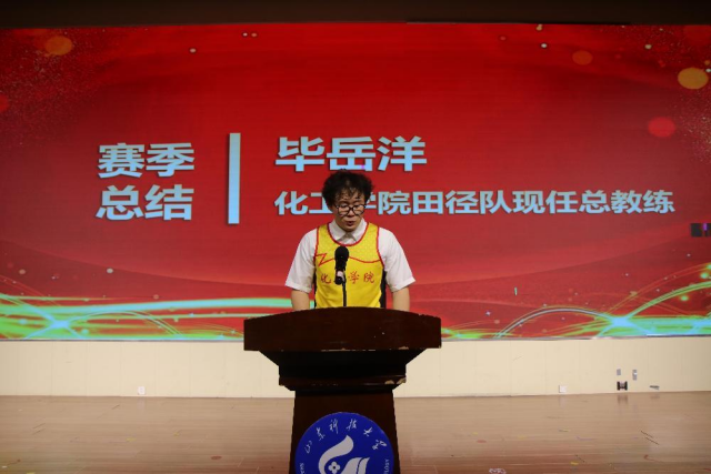 窦存增代表学院向全体毕业生顺利毕业致以热烈的祝贺,向努力坚守、屡获佳绩的学院田径队健儿们、向受到表彰的集体和同学们表示热烈的祝贺和崇高的敬意!他指出,学院田径队夺得六个分组中的五个总分冠军、一个总分亚军,延续了双冠王的荣誉。他对毕业生提出三点希望:一是做人要诚,以诚待人、学会感恩、换位思考;二是做事要实,既要脚踏实地,又要总结思考;三是立足长远,有襟怀天下、舍我其谁的宽广胸怀,树立战胜困难的决心和百折不挠的毅力。最后,他祝愿化工田径队能够续写传奇、再创辉煌!祝愿2025届毕业生前程似锦、一路顺风!