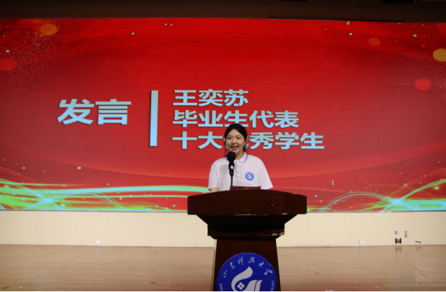 毕业生代表刘乃民和王奕苏发表获奖感言与经验分享。