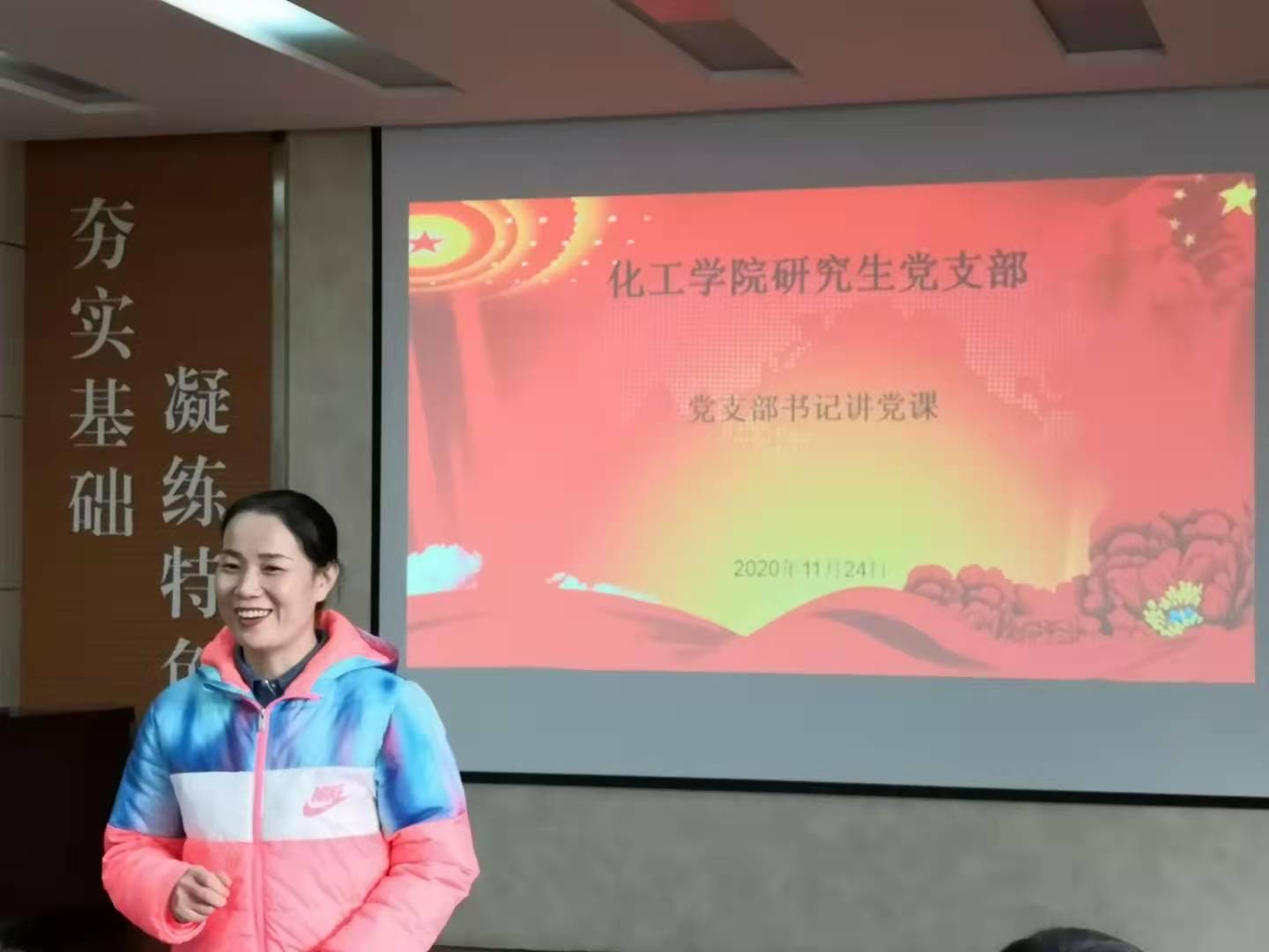 研究生党支部书记易凡在J2-104为支部成员讲党课。党课的主要内容是“深刻理解党的十九届五中全会精神”,色情网站