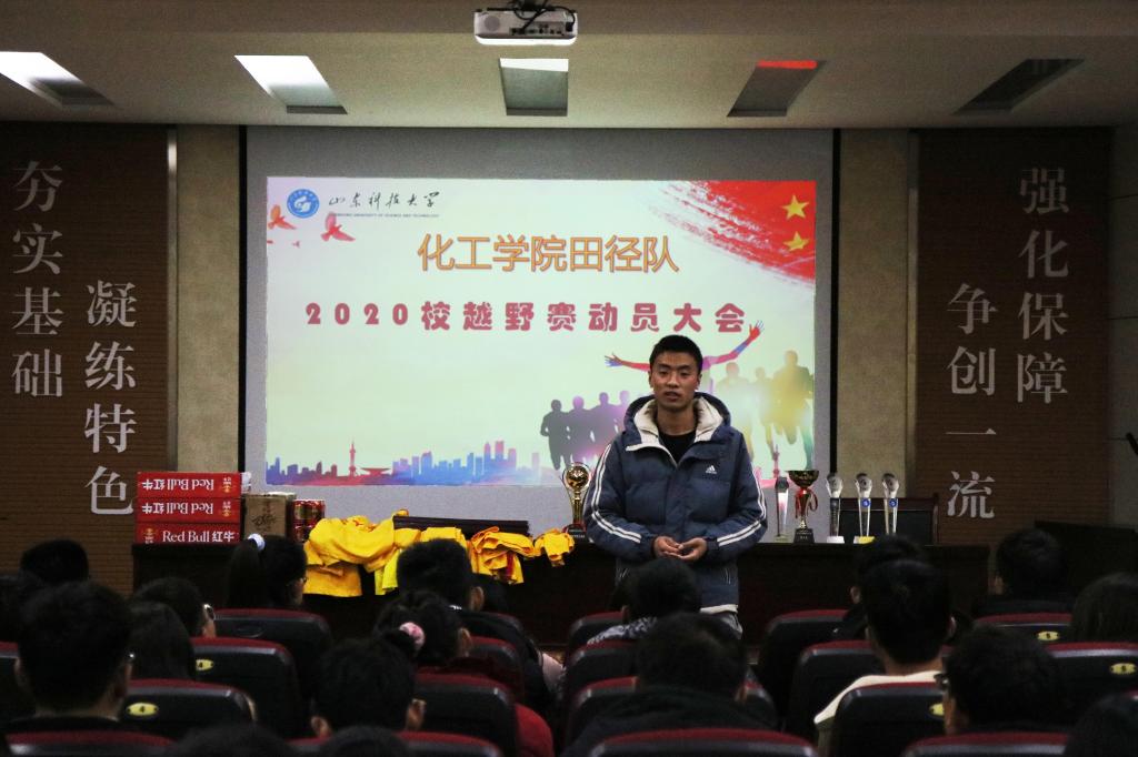 接着是老队员讲述环节,已通过2020年辅导员优选计划的大四运动员牛纪达向大家分享了自己在田径队的经历,强调了组织意识和体育精神的重要性,为队员们加油鼓劲,希望大家以最好的状态参赛,为学院再立新功;田径队副总教练于建壮做了校越野赛具体工作安排;学生会体育部部长李吉振为全体人员发放奖励物资,并为参赛队员发放小黄衫和号码布,表示将全力做好赛前准备工作和后勤保障工作,全程为运动员保驾护航。