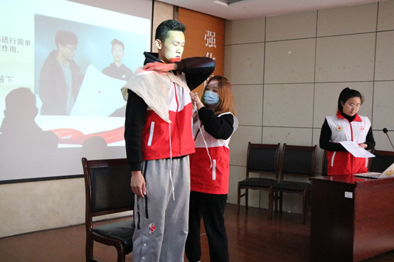 举办应急救护与安全避险知识宣讲会,校红十字会、校大学生社会实践与志愿服务中心同学担任宣讲人。