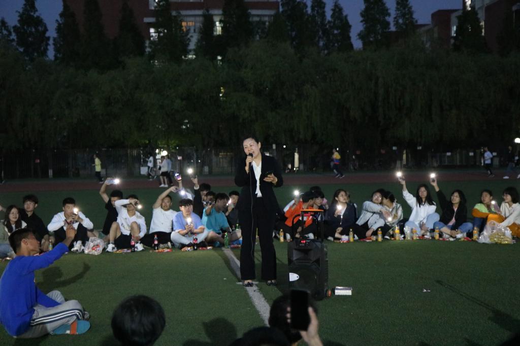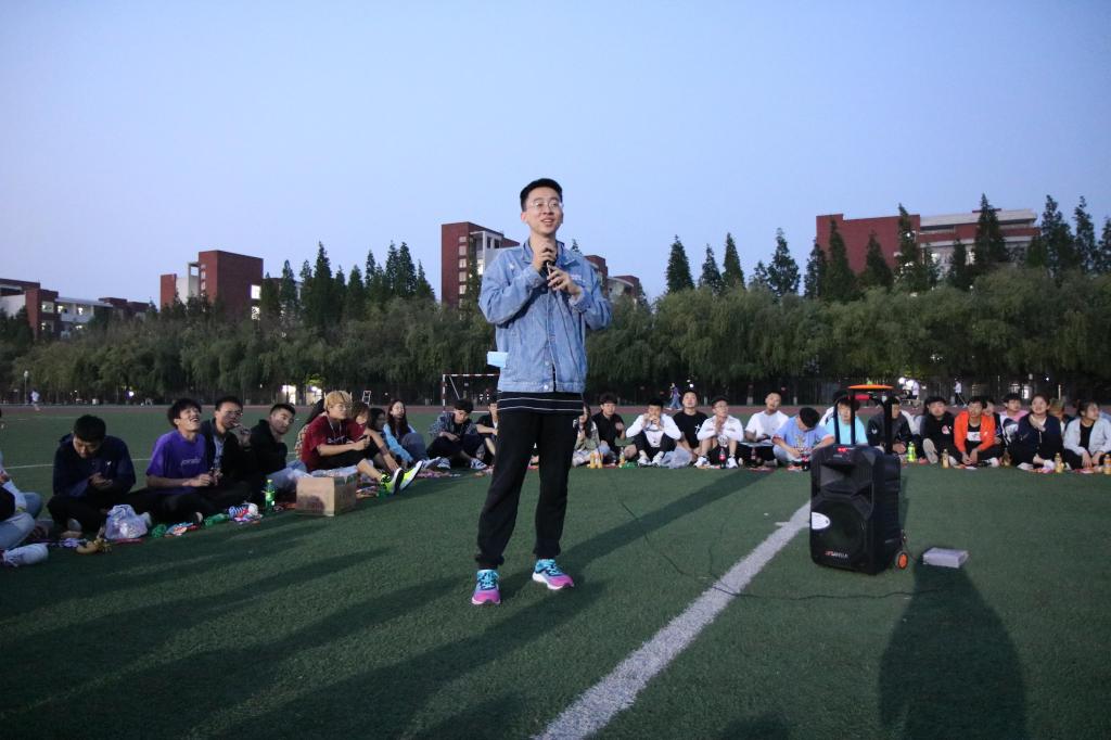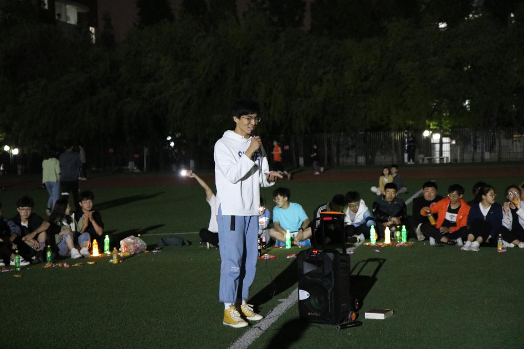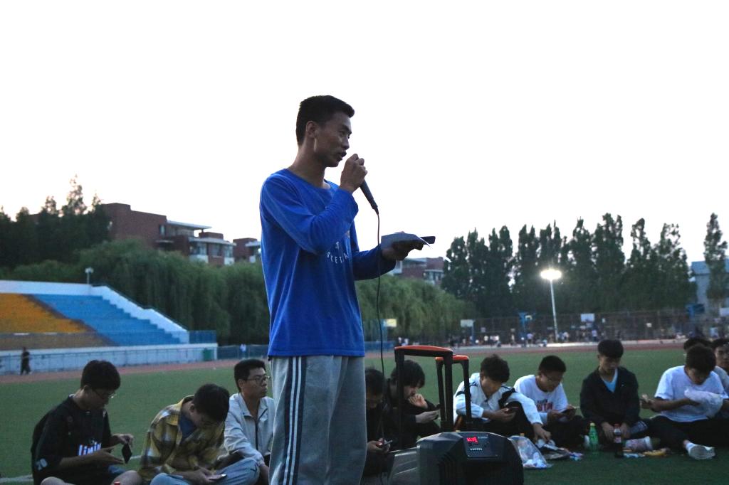 夜幕初起,老师和同学们在谈笑之间围成了一个圈,把圆圈中间作为舞台。19:00,主题团日活动开始,主持人李彦钊首先发表了一段关于本次校运会再获双冠暨甲组十连冠乙组十年九冠的总结,他的讲述激情澎湃,引发同学们回忆起一周前的运动会,激发了大家的真情共鸣。随后,他请出了为运动会提供主力后勤保障服务的色情网站