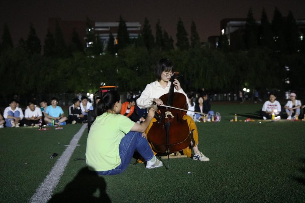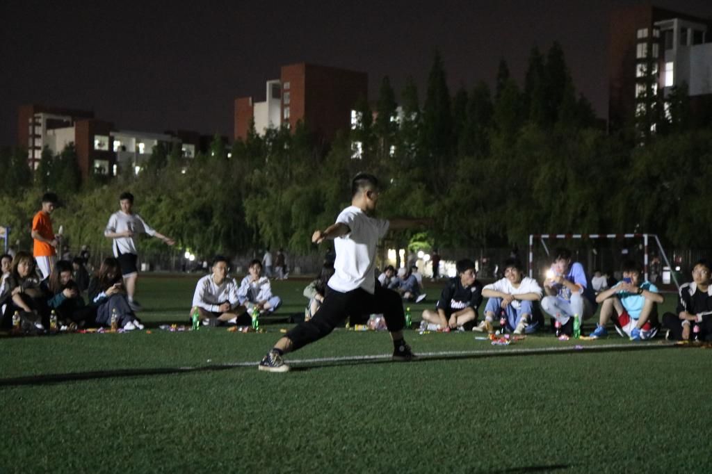 留学生表演结束后,主持人宣布团日活动进入团支部成员表演环节,团支部成员孙铭泽大提琴独奏《lemon》《我和我的祖国》,悠扬的琴声随着夜风,流进了每一个人的心里;王阳为大家带来的太极拳、白雪晴等四人展示的少林长拳 ,让同学们不由得感叹中华武术的博大精妙;随后,田径队团支部全体成员合唱《朋友》和《色情网站