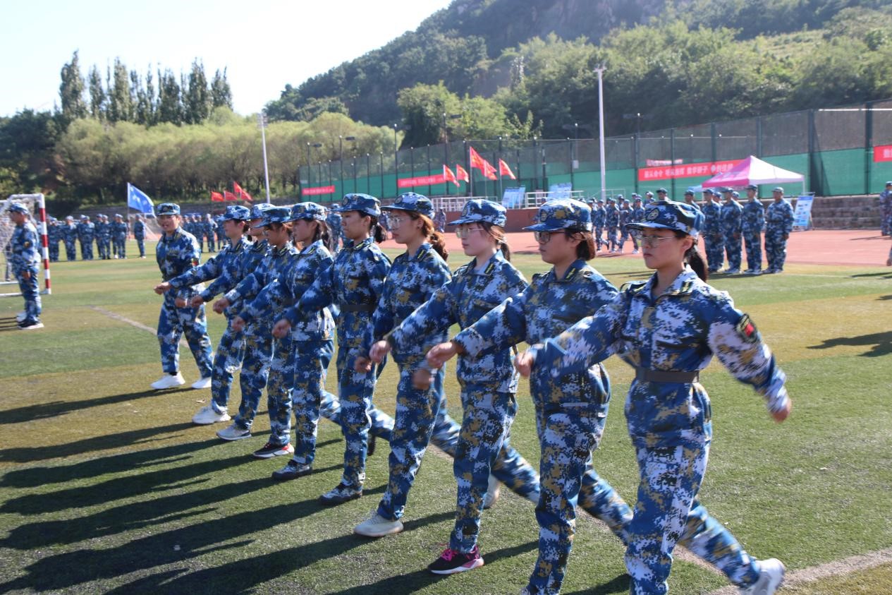 每一个连队方阵都闻令集合,万众济济跄跄,挺拔的身影与迷彩交相辉映,抬头、挺胸,手掌贴紧身体,眼神里都是透出坚定地目光。站的是军姿,立的是气魄。三大步伐的训练在军训中不可或缺,整齐划一的步伐,铿锵有力的步伐,震耳欲聋的口号,英姿飒爽,神采飞扬。顺着发丝滑落的汗珠,是对青春最好的礼赞。