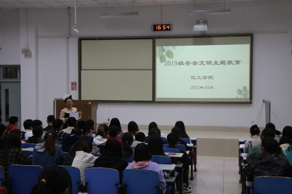 于10月8日召开2019级安全文明主题教育会议,辅导员李玲玲及2019级全体学生参加会议。