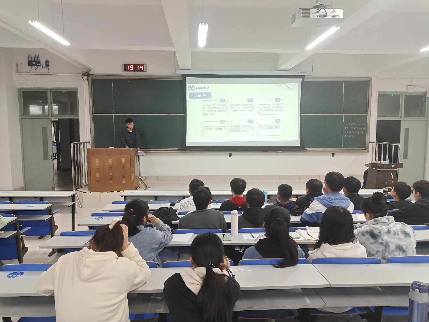 首先,刘庆祥介绍了他大一到大三3年的学习、科研历程,并展示了大一至大三的获奖情况。他以自身为例讲述大学生要劳逸结合,拒绝躺平式大学生,避免各个学科挂科。其次,同学们应该注意扩大知识面,提高专业技能,在学习时抽出空余时间了解相关科技创新竞赛,并在有余力时积极参加相关竞赛,勇敢迈出属于自己的第一步。再者,进入实验室需树立自身目标,不应无目的随众进入实验室,进入实验室后应与导师和研究生积极沟通,找到适合自己的科研方向,并且自己着重动手操作,学习相关科研技能。最后,刘庆祥提醒20级的同学们,在大学的生活中,每个人都不应该急功近利,在合适的时间做合适的事情,找到属于自己的路,脚踏实地的走下去。