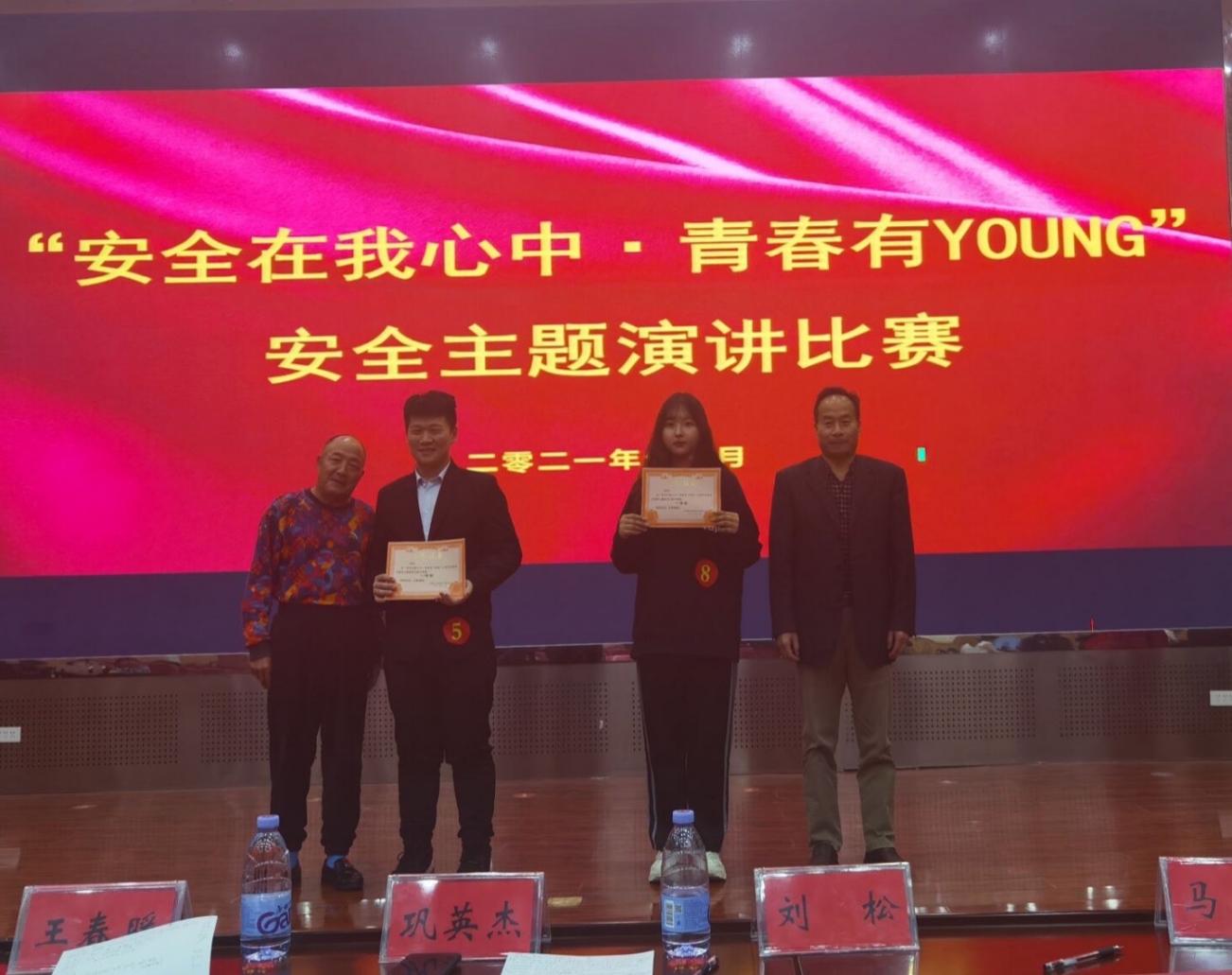 2021级学生王奕苏在校团委主办的“安全在我心中·青春有YOUNG”主题演讲比赛决赛中,以发人深省的内容、落落大方的演讲风格,喜获大赛一等奖。