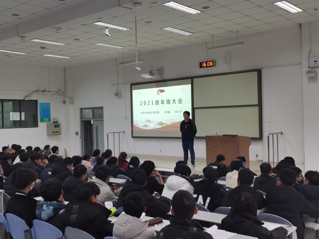 于12月16日召开2021级年级大会,会议由2021级辅导员王大鹏主持。