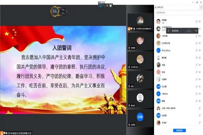 各团支部开展了“青春心向党,建功新时代” 五四特别主题团日活动。在此次活动中,各团支部集中学团史、唱团歌,各支部书记带领全体团员青年重温入团誓词。在团史学习中,各团支部主讲人通过音频、视频为大家讲述了共青团一百年来波澜壮阔、紧跟党走的历史,使各位团员青年深受震撼,学习过后,各支部团员青年举起右拳面向团旗重温入团誓词,活动在大家齐唱的《光荣啊,中国共青团》美妙歌声中结束。
