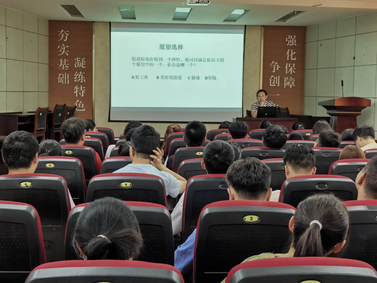 李老师从神灯的愿望引入心理健康,详细讲解了为何要重视心理健康,如何正确把握心理健康的标准,怎样做好心理健康管理,并针对研究生期间生活和学习中容易出现的问题给出了合理化建议。