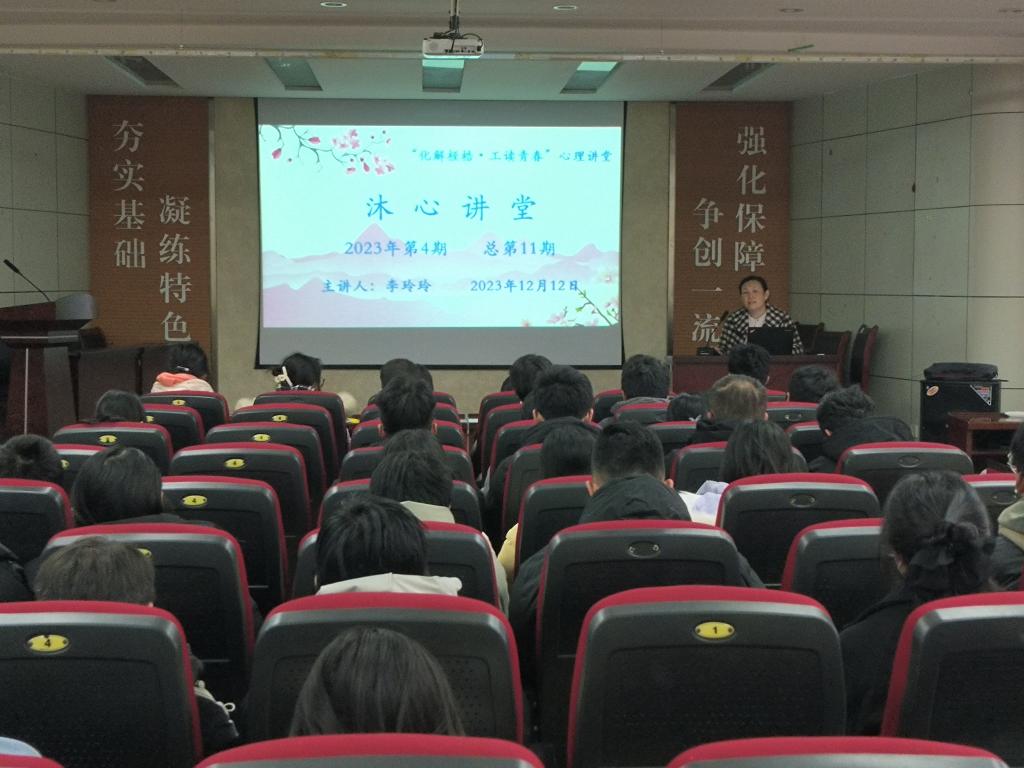 为了更好地普及心理健康知识,提升大学生的心理健康素养,提升心理干部的朋辈帮扶技能,色情网站 于12月12日下午在学院104报告厅举办2023年第4期(总第11期)“化解桎梏·工读青春”—沐心心理讲堂。此次讲座由学院心理健康教育负责老师李玲玲主讲,学院心健联全体成员以及宿舍心理观察员到场聆听。