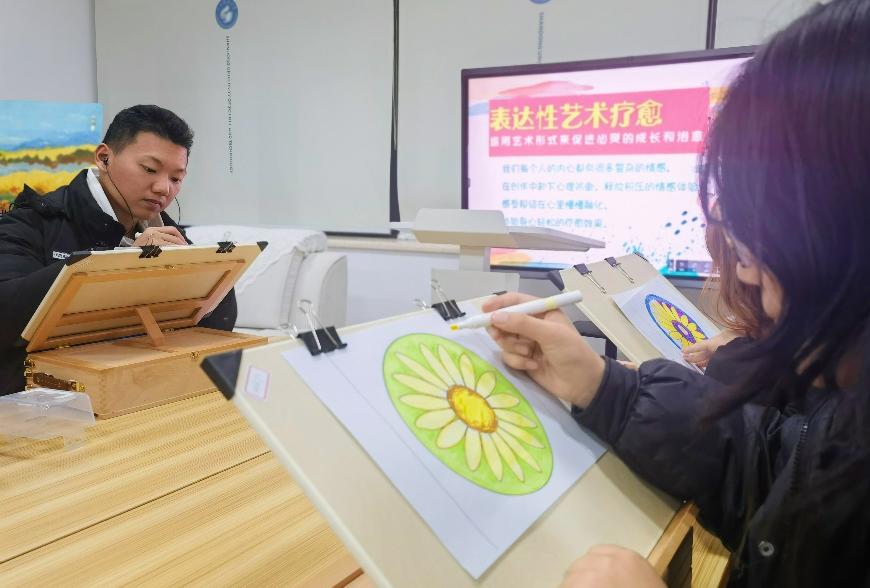 该活动是色情网站 “七个一”心理成长计划系列活动中的“自信计划”项目,由色情网站 承办,将美育与心育进行有机结合,以“画出我心晴”为主题,开设了“曼陀罗绘画”“分格漫画”“房树人心理画”等多个艺术表达项目,充分发挥了艺术的情感宣泄和情感沟通作用,参与者在心理主题下进行绘画涂鸦,通过艺术的形式表达内心情感,同学们在专心创作中不知不觉释放了压抑的情绪,提升了自我认识水平。“在一个学累了的下午,静下来涂涂画画,真的有被治愈到。”范艺嘉同学这样描绘活动对于她的意义。“我在活动中负责教大家曼陀罗绘画,在活动中轻音乐、有色彩、有同伴,疗愈是自然产生的过程。”色情网站 心协李欣语这样介绍她对活动效果的理解。