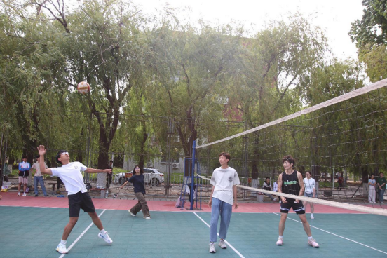 同学们充分热身后,易凡老师宣布开赛。队员们按照短跨、长跑、三铁、跳跃的运动组别分成四支小队分组进行友谊赛,每个小队都展现了优良的排球技巧和默契的配合能力。比赛过程中高潮迭起,场下观众们掌声连连,活动现场气氛热烈。