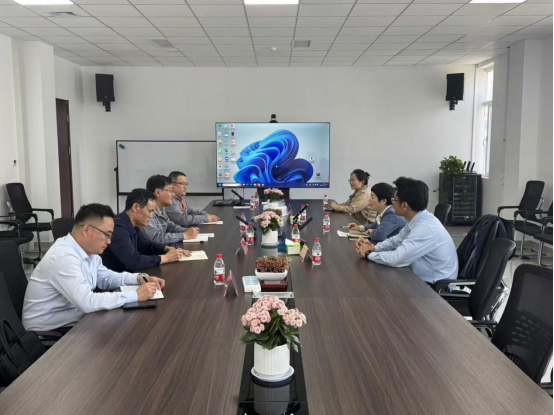 在山东澳帆新材料有限公司,公司副总经理杨宾、技术总工李宗帅等接待了田静一行。杨宾介绍了公司的发展运营情况和行业发展现状。李宗帅介绍了公司在工艺优化、科技创新等方面取得的成果。双方期待在技术攻关、科研合作、就业招聘等方面开展深入合作。