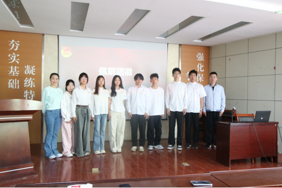 在J2-104报告厅举行2025年新发展团员入团仪式。学院团委书记兼学工办主任易凡、2024级辅导员满灏、优选计划辅导员李子龙、团员代表以及新发展团员参与了此次活动。仪式由2023级辅导员孙梦柯主持。